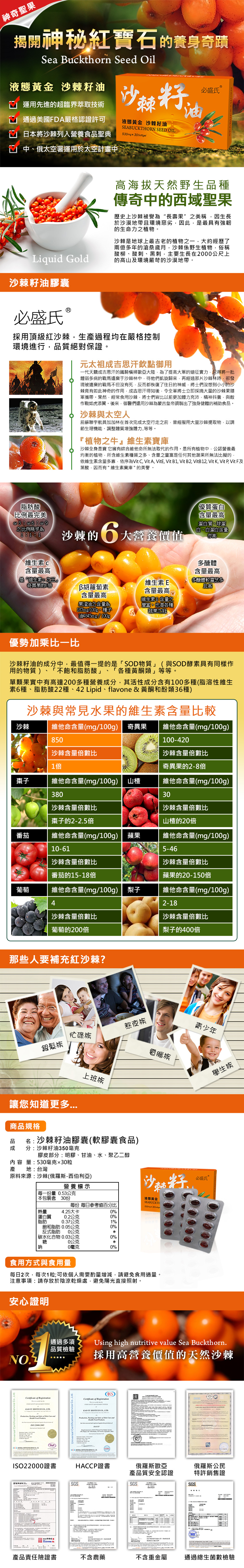 沙棘籽油 (膠皮部分:明膠、甘油、水、聚乙二醇)